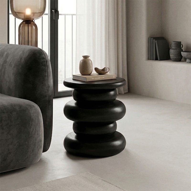 Δώστε ένταση και στυλ στον χώρο σας με την μαύρη έκδοση του σπονδυλωτού μας βοηθητικού τραπεζιού. Κατασκευασμένο από μασίφ ξύλο μάνγκο, αυτό το τραπέζι συνδυάζει την οργανική ζεστασιά του ξύλου με τη δυναμική κομψότητα του μαύρου χρώματος. Οι καμπύλες του αντανακλούν το φως δημιουργώντας ένα μοναδικό οπτικό παιχνίδι, καθιστώντας το την ιδανική επιλογή για όσους θέλουν να ξεφύγουν από τα συνηθισμένα.