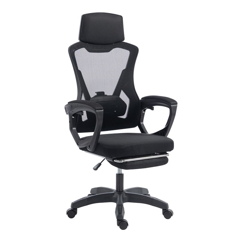 Καρέκλα γραφείου διευθυντή με υποπόδιο Meton pakoworld mesh χρώμα μαύρο 48x60x118-128εκ