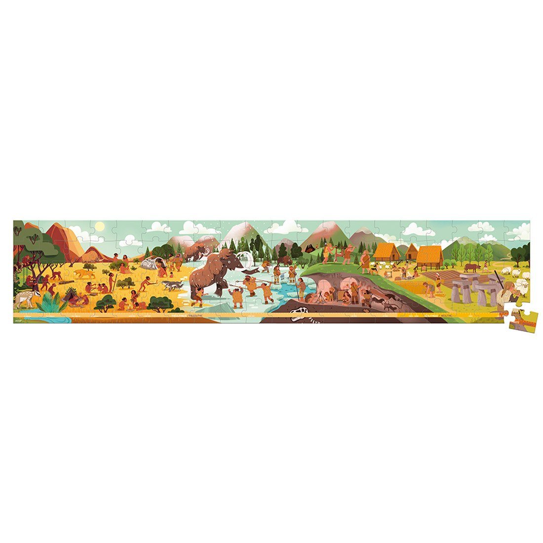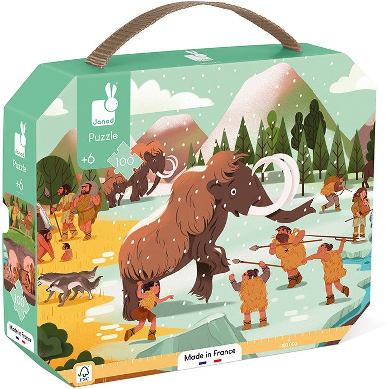 Μάθετε παίζοντας με αυτή την προϊστορική σκηνή. Αυτό το χαριτωμένο πανοραμικό καρτονέ παζλ με θέμα την προϊστορία αποτελείται από 100 κομμάτια. Περιλαμβάνει επίσης αφίσα, που βοηθά τα παιδιά να συναρμολογήσουν το παζλ, και ταυτόχρονα να μάθουν περισσότερα για την προϊστορία. Είναι πανεύκολο στη μεταφορά, χάρη στο καλαίσθητο κουτί του σε σχήμα βαλίτσας. Αυτό το παζλ είναι ιδανικό για την ανάπτυξη της υπομονής και λεπτών κινητικών δεξιοτήτων. Κατασκευασμένο στη Γαλλία από υλικά πιστοποιημένα από το Συμβούλιο Διαχείρισης των Δασών (FSCTM) και με μελάνια φυτικής προέλευσης. Παζλ για παιδιά ηλικίας από 6 ετών και άνω.