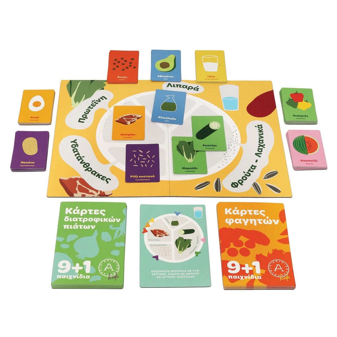 Παίζοντας μαθαίνω τι να τρώω! 9+1 παιχνίδια, από τον Άκη Πετρετζίκη, που μπορείς να παίξεις με τα φιλαράκια σου αν συνδυάσεις τις κάρτες που θα βρεις μέσα σε αυτό το κουτί. Παίζοντας θα μάθεις να αναπτύσσεις τη λογική σκέψη, τη διάκριση κατηγοριών, τον συντονισμό χεριού-ματιού, τη λεπτή κινητικότητα, την παρατηρητικότητα, τη μνήμη, την πρώτη γραφή-αντιγραφή, την υπομονή, την ταχύτητα, τη συνεργασία, τη φαντασία, την κριτική σκέψη και τη διασκέδαση. Άσε που θα ανακαλύψεις και τις ομάδες τροφίμων, μαθαίνοντας συγχρόνως να δημιουργείς ένα σωστό διατροφικό πιάτο.Σχεδιασμός Παιχνιδιών/Παιδαγωγική Επιμέλεια: Κυριάκος Μούρτζης Σχεδιασμός/Art Direction/Εικονογράφηση: busybuilding