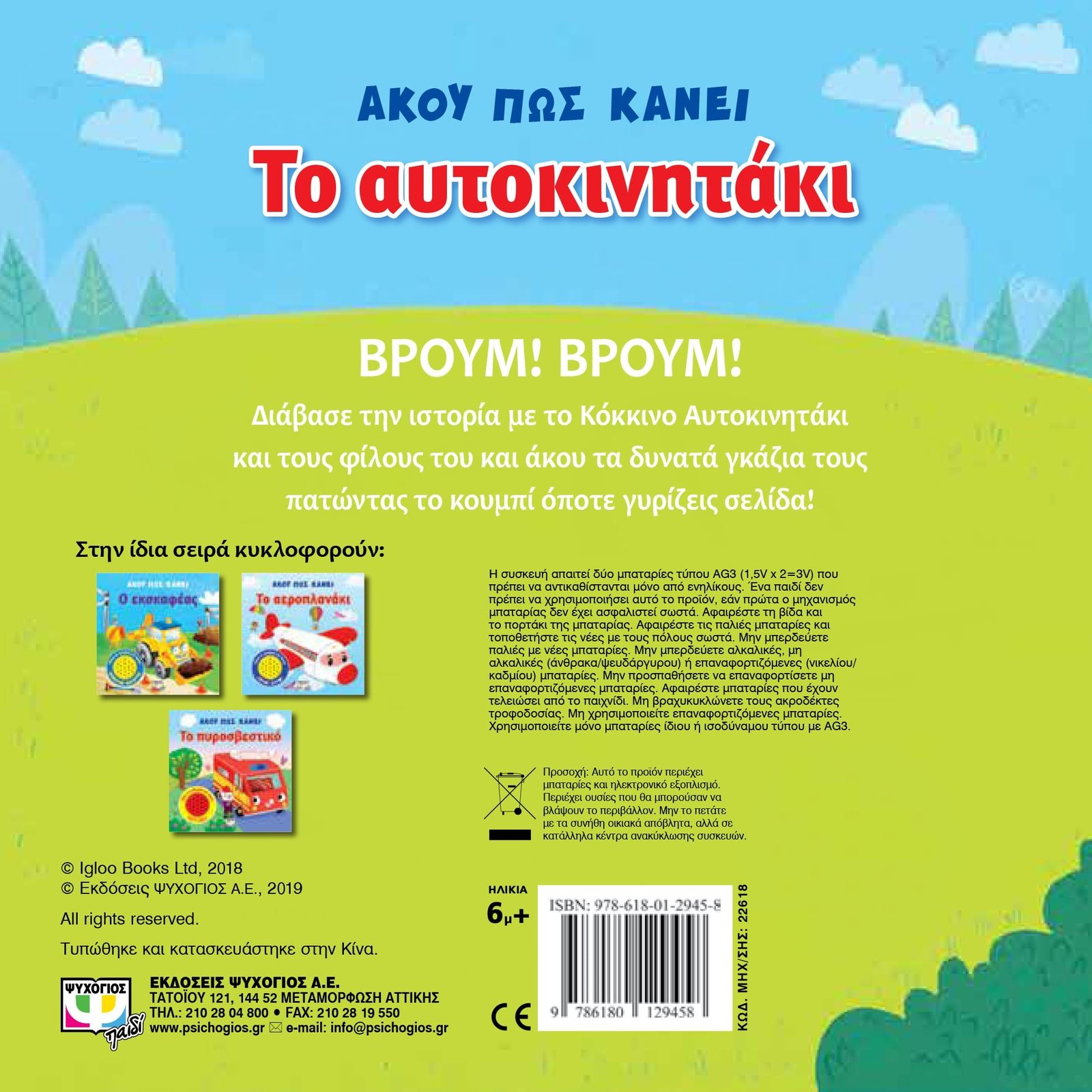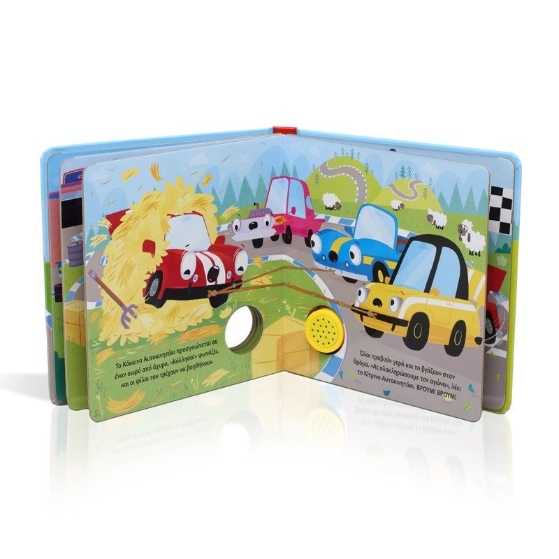 ΒΡΟΥΜ! ΒΡΟΥΜ! Διάβασε την ιστορία με το Κόκκινο Αυτοκινητάκι και τους φίλους του και άκου τα δυνατά γκάζια τους πατώντας το κουμπί όποτε γυρίζεις σελίδα!