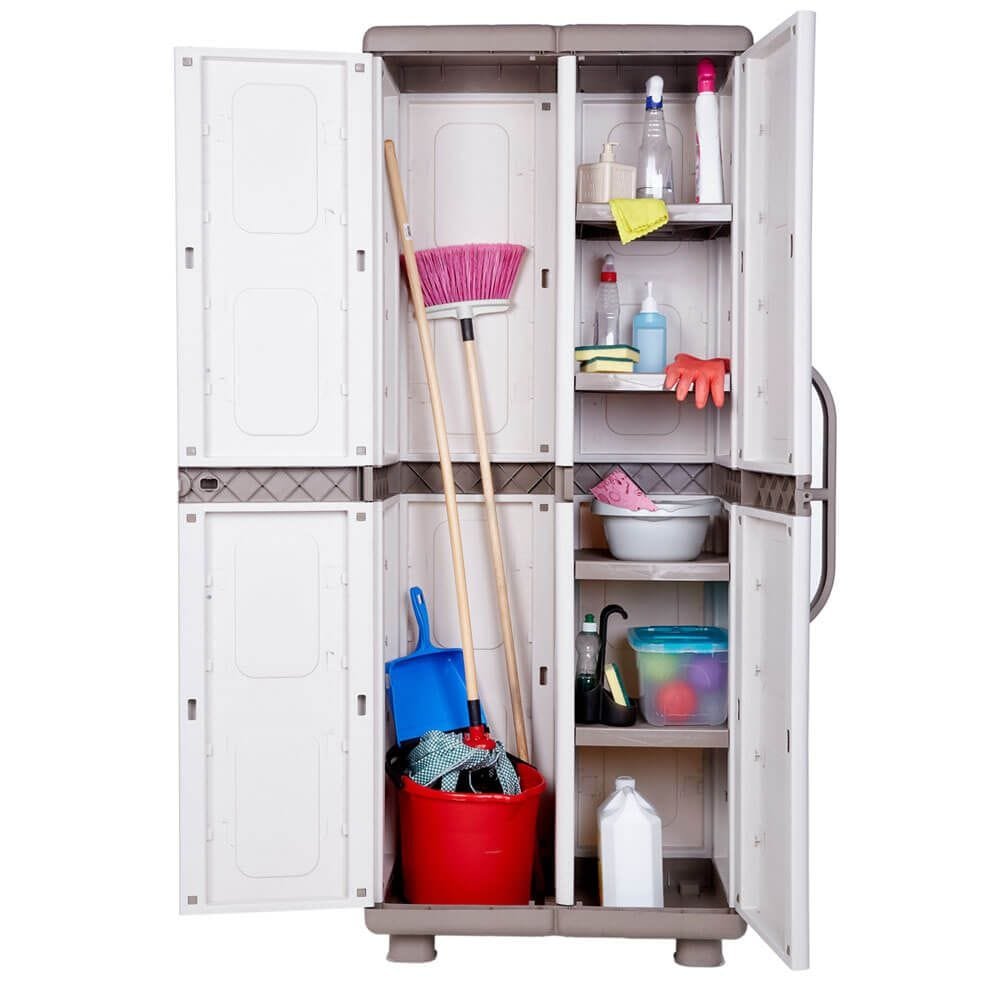 Αποτελείται από 2 πόρτες, 4 ράφια με αντοχή βάρους έως 25kg. Η εύκολη συναρμολόγηση παράλληλα με την ανθεκτική της κατασκευή στις καιρικές συνθήκες την καθιστούν ως μια ιδανική λύση για το μπαλκόνι σας ή το γκαράζ. Ιδανική για αποθήκευση σκούπας / σφουγγαρίστρας / σιδερώστρας και άλλων ψηλών αντικειμένων.