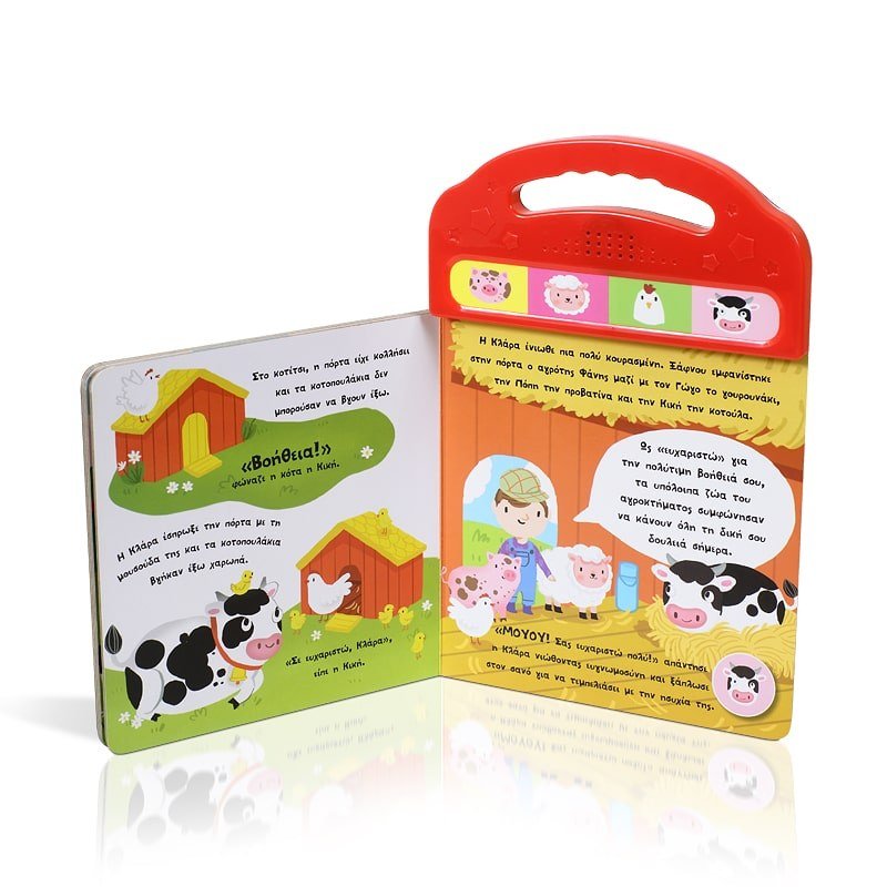 Η αγελαδίτσα Κλάρα έχει πολλή δουλειά στο αγρόκτημα, όμως το μόνο που θέλει είναι να κοιμηθεί…Παίξε με τους τέσσερις διασκεδαστικούς ήχους ζώων και ζωντάνεψε την ιστορία, που προβάλλει την αξία της αλληλεγγύης. Με το πρακτικό χερουλάκι του, το βιβλίο αυτό είναι ιδανικό για τους μικρούς αναγνώστες που θέλουν να το έχουν συνέχεια μαζί τους!