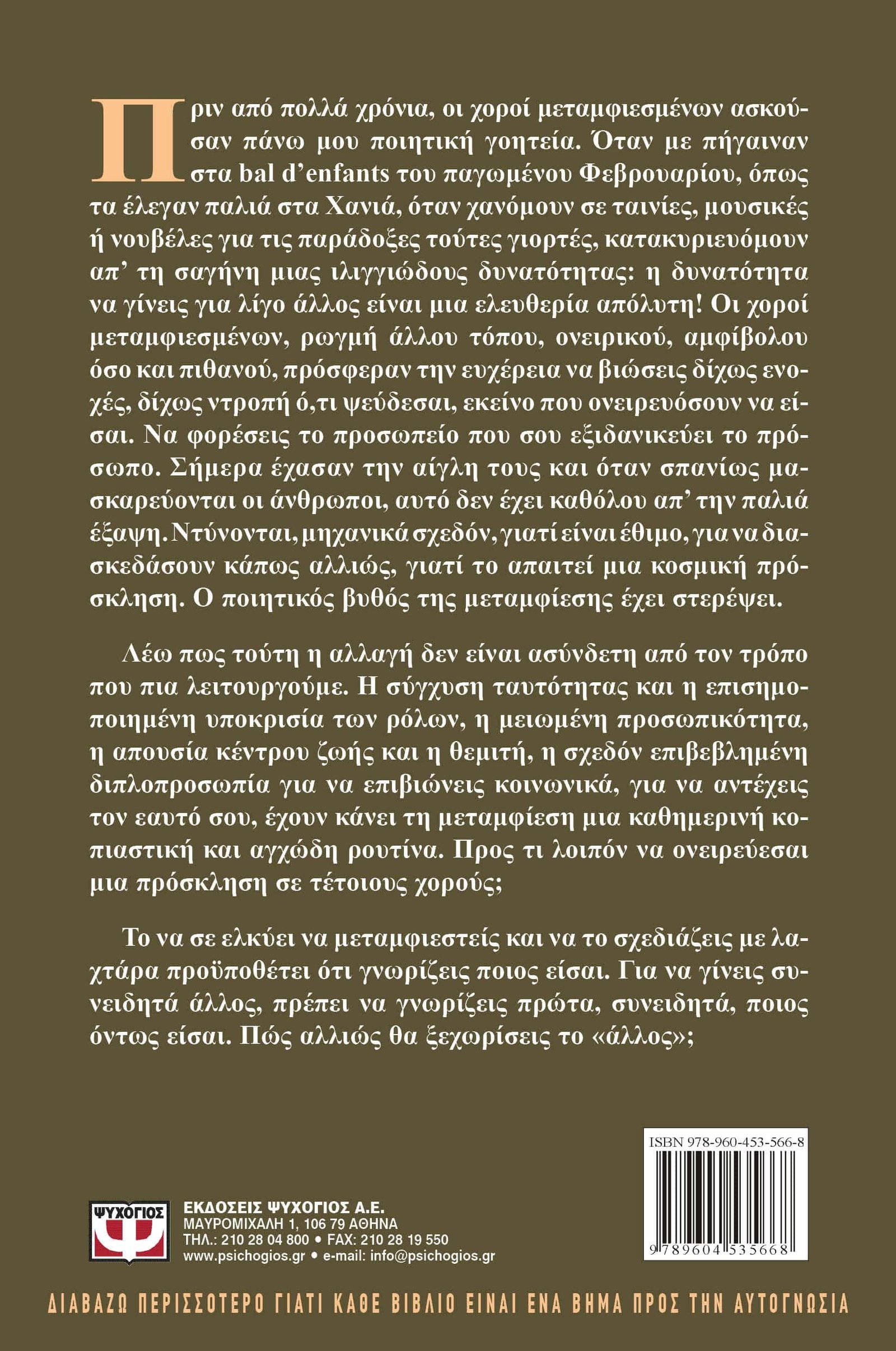 Πριν από πολλά χρόνια, οι χοροί μεταμφιεσμένων ασκούσαν πάνω μου ποιητική γοητεία. Όταν με πήγαιναν στα bal d’ enfants του παγωμένου Φεβρουαρίου, όπως τα έλεγαν παλιά στα Χανιά, όταν χανόμουν σε ταινίες, μουσικές ή νουβέλες για τις παράδοξες τούτες γιορτές, κατακυριευόμουν απ’ τη σαγήνη μιας ιλιγγιώδους δυνατότητας: η δυνατότητα να γίνεις για λίγο άλλος είναι μια ελευθερία απόλυτη! Οι χοροί μεταμφιεσμένων, ρωγμή άλλου τόπου, ονειρικού, αμφίβολου όσο και πιθανού, πρόσφεραν την ευχέρεια να βιώσεις δίχως ενοχές, δίχως ντροπή ό,τι ψεύδεσαι, εκείνο που ονειρευόσουν να είσαι. Να φορέσεις το προσωπείο που σου εξιδανικεύει το πρόσωπο. Σήμερα έχασαν την αίγλη τους και όταν σπανίως μασκαρεύονται οι άνθρωποι, αυτό δεν έχει καθόλου απ’ την παλιά έξαψη. Ντύνονται, μηχανικά σχεδόν, γιατί είναι έθιμο, για να διασκεδάσουν κάπως αλλιώς, γιατί το απαιτεί μια κοσμική πρόσκληση. Ο ποιητικός βυθός της μεταμφίεσης έχει στερέψει. Λέω πως τούτη η αλλαγή δεν είναι ασύνδετη από τον τρόπο που πια λειτουργούμε. Η σύγχυση ταυτότητας και η επισημοποιημένη υποκρισία των ρόλων, η μειωμένη προσωπικότητα, η απουσία κέντρου ζωής, και η θεμιτή, η σχεδόν επιβεβλημένη διπλοπροσωπία για να επιβιώνεις κοινωνικά, για να αντέχεις τον εαυτό σου, έχουν κάνει τη μεταμφίεση μια καθημερινή κοπιαστική και αγχώδη ρουτίνα. Προς τι λοιπόν να ονειρεύεσαι μια πρόσκληση σε τέτοιους χορούς; Το να σε ελκύει να μεταμφιεστείς και να το σχεδιάζεις με λαχτάρα προϋποθέτει ότι γνωρίζεις ποιος είσαι. Για να γίνεις συνειδητά άλλος, πρέπει να γνωρίζεις πρώτα, συνειδητά, ποιος όντως είσαι. Πώς αλλιώς θα ξεχωρίσεις το “άλλος”;