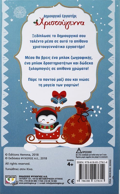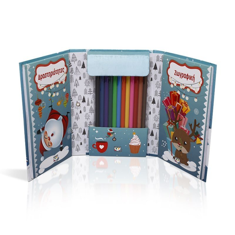Ξεδίπλωσε το δημιουργικό σου ταλέντο μέσα σε αυτό το απίθανο χριστουγεννιάτικο εργαστήρι! Μέσα θα βρεις ένα μπλοκ ζωγραφικής, ένα μπλοκ δραστηριοτήτων και δώδεκα ξυλομπογιές σε απίθανα χρώματα! Πάρε το παντού μαζί σου και νιώσε τη μαγεία των γιορτών!