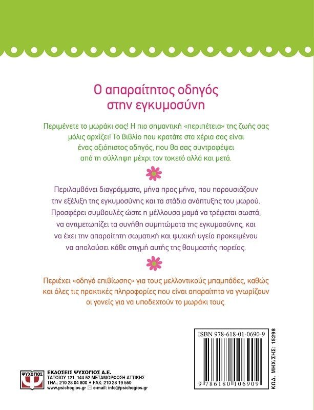 Περιμένετε το μωράκι σας! Η πιο σημαντική «περιπέτεια» της ζωής σας μόλις αρχίζει! Το βιβλίο που κρατάτε στα χέρια σας είναι ένας αξιόπιστος οδηγός, που θα σας συντροφέψει από τη σύλληψη μέχρι τον τοκετό αλλά και μετά.Περιλαμβάνει κεφάλαια, μήνα προς μήνα, που παρουσιάζουν την εξέλιξη της εγκυμοσύνης και τα στάδια ανάπτυξης του μωρού. Προσφέρει συμβουλές ώστε η μέλλουσα μαμά να τρέφεται σωστά, να αντιμετωπίζει τα συνήθη συμπτώματα της εγκυμοσύνης και να έχει την απαραίτητη σωματική και ψυχική υγεία, προκειμένου να απολαύσει κάθε στιγμή αυτής της θαυμαστής πορείας.Περιέχει «οδηγό επιβίωσης» για τους μελλοντικούς μπαμπάδες, καθώς και όλες τις πρακτικές πληροφορίες που είναι απαραίτητο να γνωρίζουν οι γονείς για να υποδεχτούν το μωράκι τους.