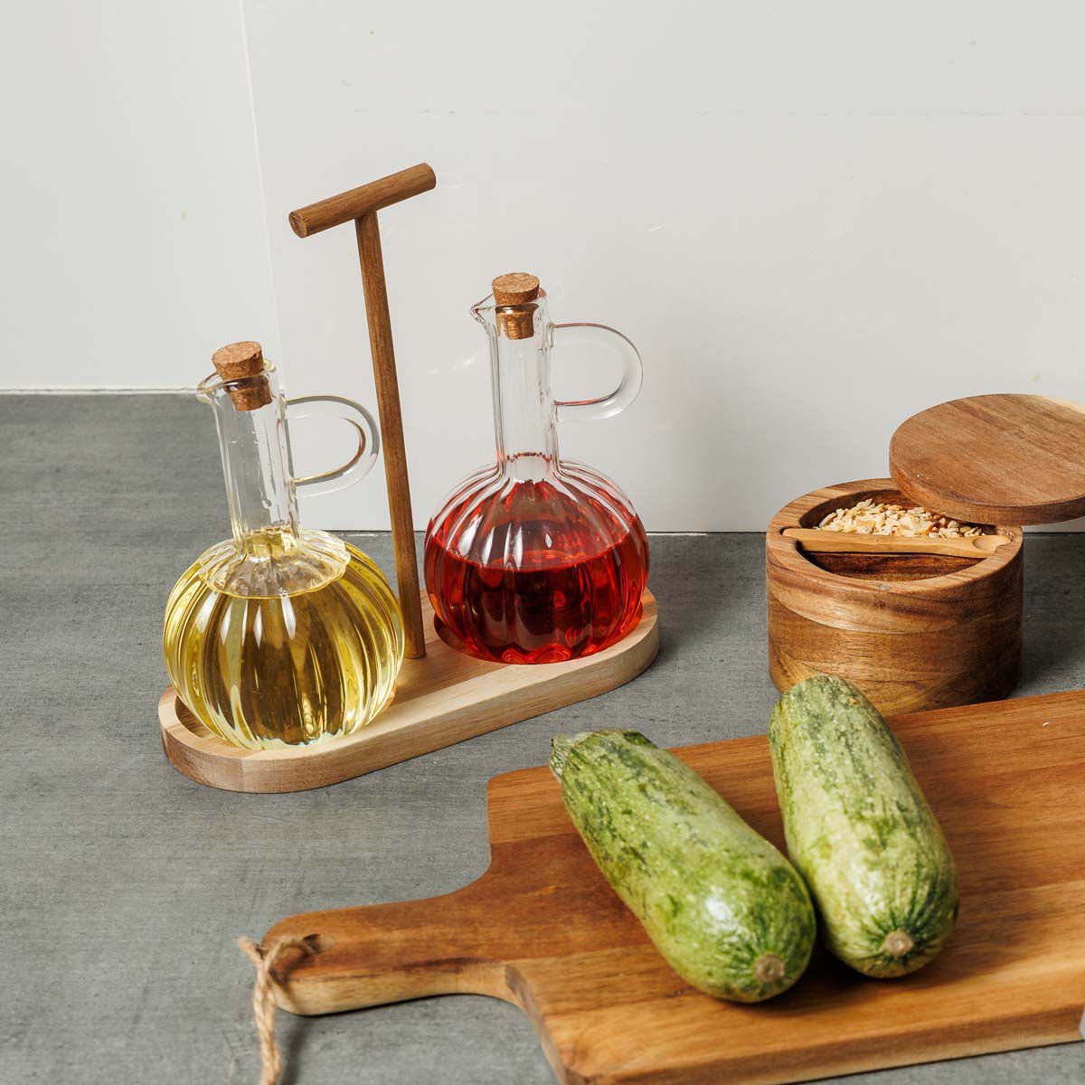 ESTIA ΔΟΧΕΙΑ ΓΙΑ ΛΑΔΙ/ΞΥΔΙ ALLURE ΓΥΑΛΙΝΑ ΣΕΤ 2 TEM ΣΕ ΞΥΛΙΝΗ ΒΑΣΗ