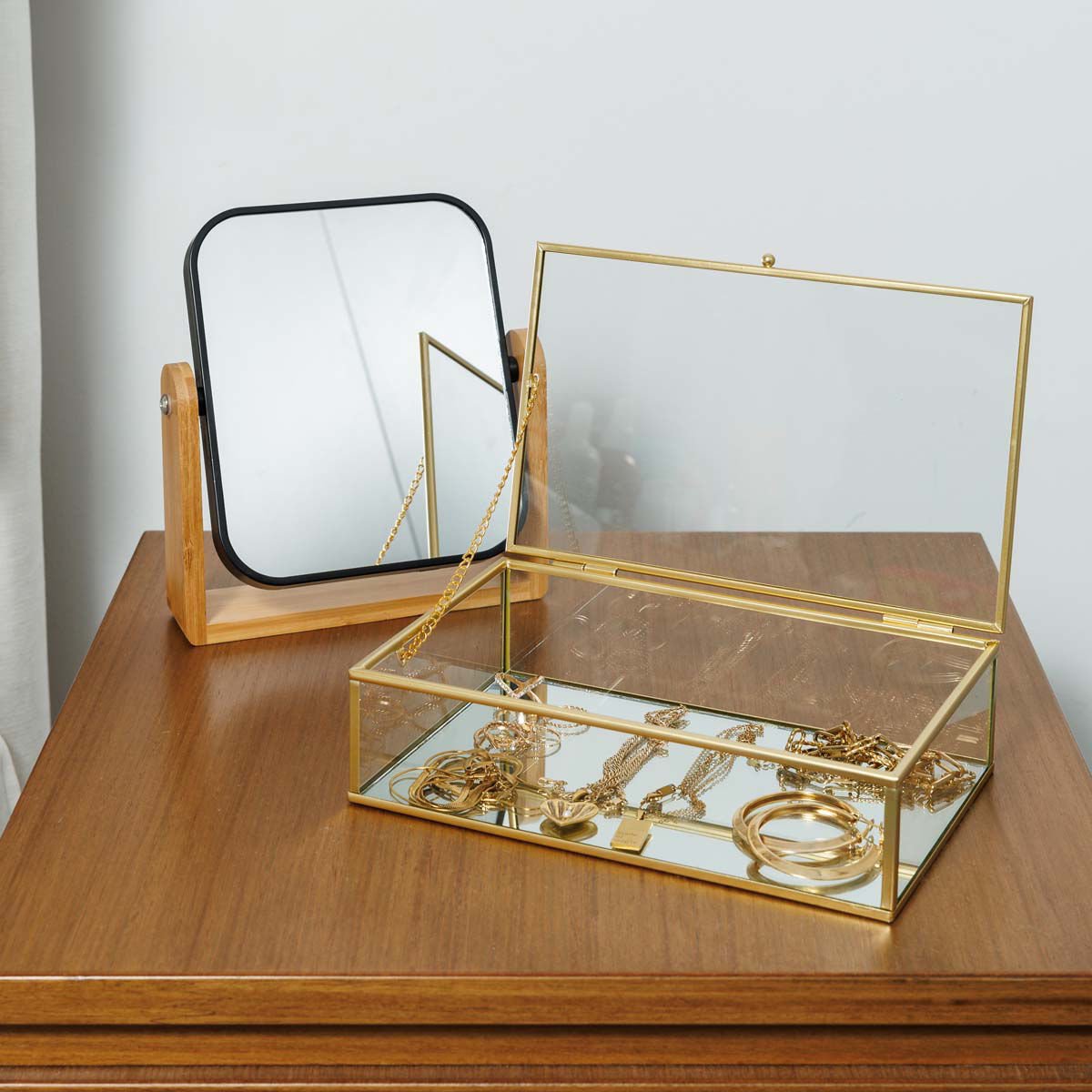 ESTIA ΚΟΥΤΙ ΟΡΓΑΝΩΣΗΣ ΓΥΑΛΙΝΟ ΜΕ ΚΑΘΡΕΠΤΗ & ΧΡΥΣΟ ΜΕΤΑΛΛΙΚΟ ΠΛΑΙΣΙΟ 24x14x6cm