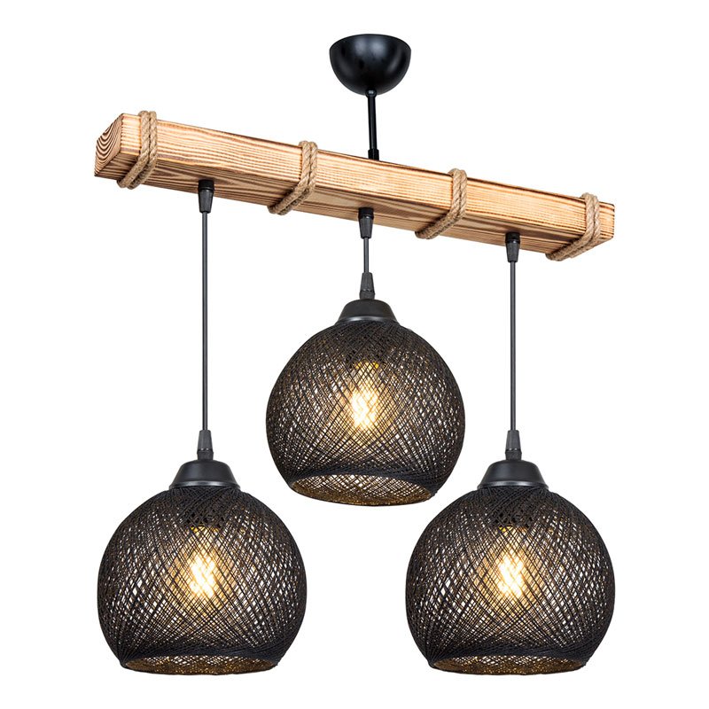 Φωτιστικό οροφής τρίφωτο Fiona pakoworld Ε27 μαύρο-φυσικό 50x20x63εκ