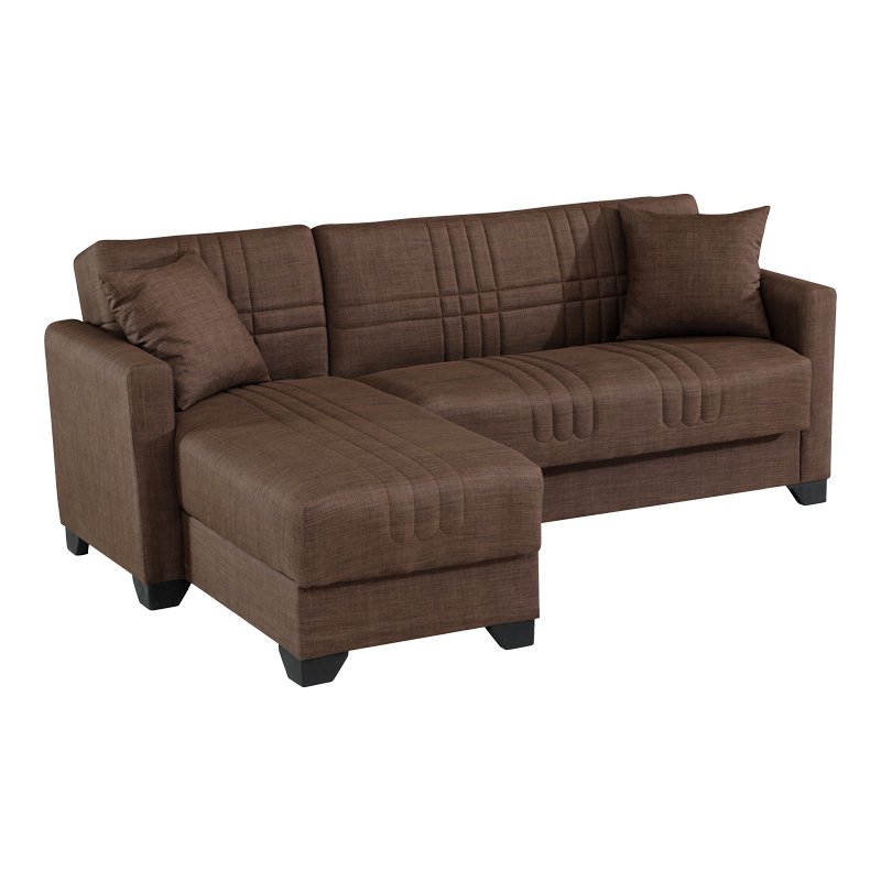 Γωνιακός καναπές-κρεβάτι αναστρέψιμος Stashio pakoworld ύφασμα καφε 202x143x84εκ