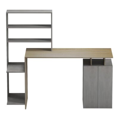 Γραφείο με βιβλιοθήκη και ντουλάπι Meza σε sonoma-γκρι cement απόχρωση 146.3x55x128.8εκ