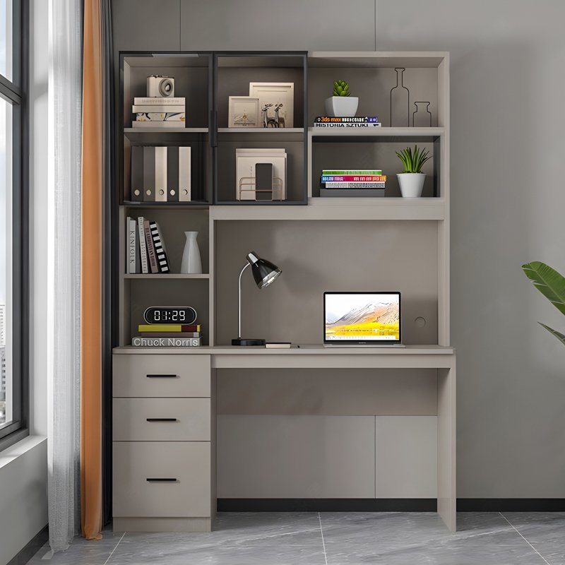 Αυτό το πολυλειτουργικό γραφείο συνδυάζει το κομψό σχεδιασμό και την εξαιρετική λειτουργικότητα. Με τα ευρύχωρα ράφια και ντουλάπι του, προσφέρει άπλετο χώρο για βιβλία, διακοσμητικά αντικείμενα και άλλα προσωπικά αντικείμενα. Το γραφείο είναι κατασκευασμένο από ανθεκτικά υλικά και διαθέτει τρία ευρύχωρα συρτάρια για την αποθήκευση των εγγράφων και των αξεσουάρ σας.Ιδανικό για σπουδαστές, επαγγελματίες που εργάζονται από το σπίτι ή για όσους αναζητούν έναν λειτουργικό και κομψό χώρο εργασίας.