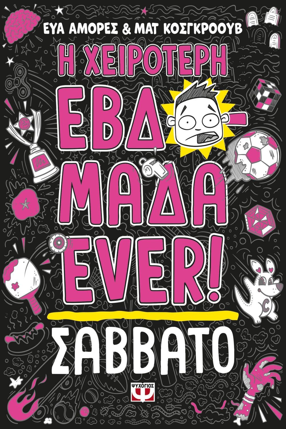 ΕΣΕΙΣ έχετε ζήσει ποτέ ΚΑΚΗ ΕΒΔΟΜΑΔΑ;Ο Τζάστιν Τσέις σίγουρα ναι, και είναι ΑΥΤΗ!Με κάποιο περίεργο τρόπο, τα έβγαλε πέρα με τη χαοτική ΔΕΥΤΕΡΑ, την τραυματική ΤΡΙΤΗκαι τη ζόρικη ΤΕΤΑΡΤΗ. Έφτασε στα όριά του με την ΠΕΜΠΤΗ και βγήκε νοκ άουτ με την ΠΑΡΑΣΚΕΥΗ!Είναι ώρα για ένα ωραίο, χαλαρωτικό Σαββατοκύριακο, σωστά; ΛΑΘΟΣ! Τώρα είναι ΣΑΒΒΑΤΟ και ο Τζάστιν πρέπει να αντέξει μια ζόμπι Αποκάλυψη… ενώ μένει δίπλα στο Νεκροταφείο των Ελίτ Αθλητών!Το ΣΑΒΒΑΤΟ είναι μια στριγκλιά!Εύα ΑμόρεςΗ Χειρότερη Εβδομάδα Ever; Μάλλον το ΚΑΛΥΤΕΡΟ ΒΙΒΛΙΟ EVER.Ματ ΚόσγκροουβΟι γονείς μας είναι σκέτη απογοήτευση.Τα παιδιά των Εύα & Ματ