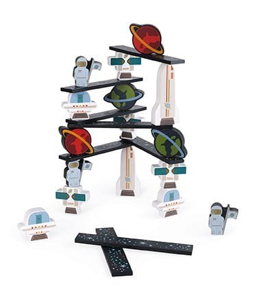 Ένα απίθανο παιχνίδι ισορροπίας, ιδανικό για την ανάπτυξη της λεπτής κινητικότητας και της συγκέντρωσης των μικρών μας… αστροναυτών!Χρησιμοποιήστε τα 36 πολύχρωμα κομμάτια για να συναρμολογήσετε μια απίθανη κατασκευή. Κάντε την όσο πιο ψηλή μπορείτε, αλλά προσέξτε μην τη ρίξετε κάτω! Γνωρίστε τον συναρπαστικό κόσμο του Διαστήματος, παίξτε με τα αποσπώμενα μέρη και απολαύστε ατελείωτες ώρες διασκέδασης! Το παιχνίδι αποτελείται από 5 αστροναύτες, 5 δορυφόρους, 4 πυραύλους, 5 πλανήτες, 5 UFO και 12 σανίδες. Είναι κατασκευασμένο από ξύλο πιστοποιημένο από το FSC.