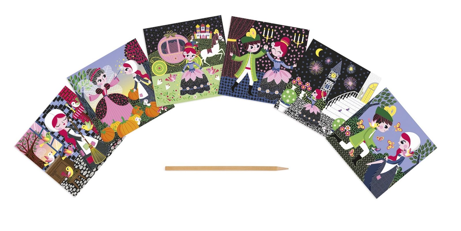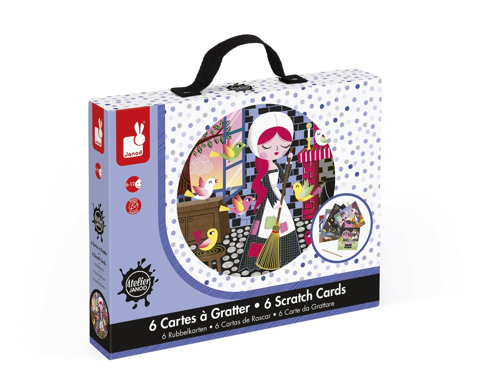 Κουτί με 5 κάρτες για ξύσιμο με θέμα τη Σταχτοπούτα και 1 ξύλινο εργαλείο. Συμπεριλαμβάνεται φ��λλάδιο οδηγιών που περιγράφει τα βήματα του ξυσίματος (μεταφρασμένο στα αγγλικά, στα γερμανικά, στα ολλανδικά, στα ισπανικά, στα ιταλικά και στα ρωσικά). Κάρτες 20 x 20 εκ. Πωλείται σε βαλιτσάκι από σκληρό χαρτόνι με πλήρη εκτύπωση και υφασμάτινη λαβή. Εσωτερική στρώση αφρού για βέλτιστη προστασία. 2 διάφανα στρογγυλά αυτοκόλλητα εξασφαλίζουν το καλό κλείσιμο του κουτιού. Προστατευτική πλαστική θήκη για τη μεταφορά.