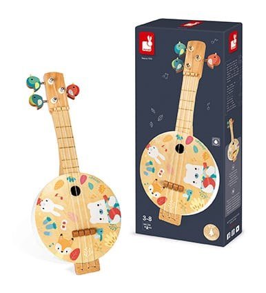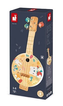 Ένα υπέροχο μπάντζο με απαλά, μοντέρνα χρώματα, για να αναπτύξει το ενδιαφέρον του παιδιού σας για τη μουσική. Τα πλήκτρα συντονισμού είναι σε σχήμα πουλιού και το μπάντζο είναι τυπωμένο με όμορφες εικόνες! Περιλαμβάνει επιπλέον 3 χορδές.