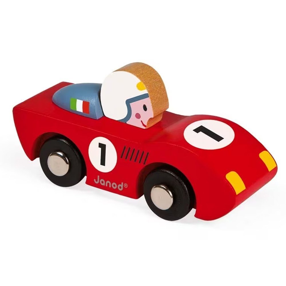Ξύλινο αγωνιστικό αυτοκίνητο. Συγκέντρωσε όλα τα μοντέλα της σειράς: ταχύτητας, φόρμουλα 1, ρετρό αυτοκίνητο, σπορ και αγωνιστική μηχανή. Συμβατά με όλα τα σετ της σειράς Story. Εκτύπωση: θερμοτυπία. Ξύλο: κερασιά. Το κεφάλι του πιλότου και το πίσω φτερό είναι στερεωμένα με βίδα και κόλλα, οι τροχοί με μεταλλικά πριτσίνια, κάνοντας το παιχνίδι αυτό εξαιρετικά ασφαλές για παιδιά ηλικίας κάτω των 3 ετών. Διατίθεται σε 6 σχέδια (3 μπλε + 3 ασημένια γκρι αυτοκίνητα). Ανοιχτό κουτί με εσωτερικό ΡΕΤ. Το κουτί διαθέτει μικρή λαβή στο πάνω μέρος και μπορεί να κρεμαστεί.
