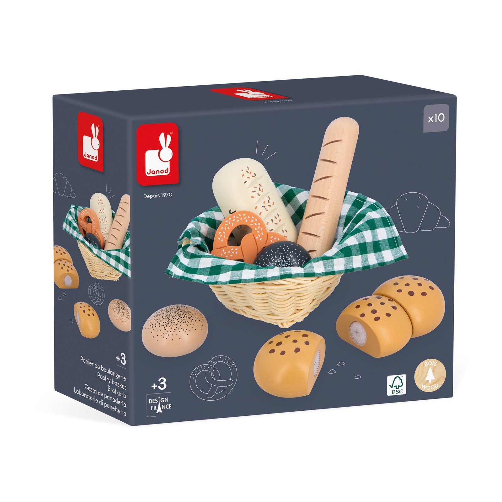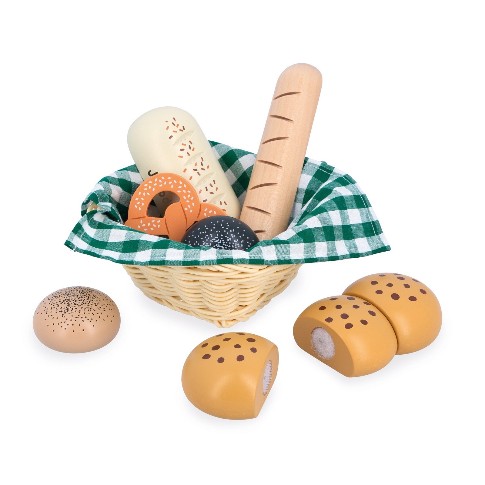 Ανακάλυψε το καλαθάκι γεμάτο με μια ποικιλία αρτοσκευασμάτων για ατελείωτο παιχνίδι! Το σετ περιλαμβάνει μια μπαγκέτα, μια φρατζόλα αγροτικού ψωμιού, 2 στρογγυλά ψωμιά, ένα κουλούρι, ένα κλιπ και ένα τσουρέκι για κοπή. Ιδανικό για μικρούς σεφ που θέλουν να ανακαλύψουν τον κόσμο της κουζίνας, το καλαθάκι βοηθά στην ανάπτυξη των λεπτών κινητικών δεξιοτήτων και ενισχύει τη φαντασία μέσα από δημιουργικό παιχνίδι.