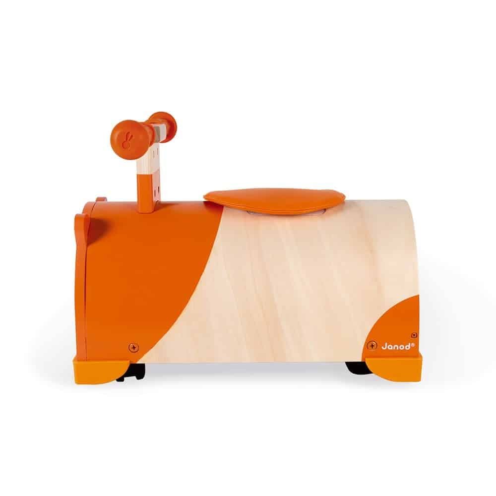 Ξύλινο παιχνίδι για νήπια ηλικίας 12-36 μηνών. Αυτό το ελκυστικό ποδοκίνητο χάμστερ θα γίνει ο ιδανικός σύντροφος του παιδιού σας! Θα βοηθήσει το παιδί σας να μάθει να στηρίζεται, καθώς το καβαλά, ενώ ταυτόχρονα μπορεί να εξερευνά τον κόσμο γύρω του σε ακτίνα 360°. Τα παιδιά μπορούν να χρησιμοποιήσουν τη θήκη που βρίσκεται στο πίσω μέρος για να αποθηκεύουν τα παιχνίδια και τα κουκλάκια τους για εύκολη μεταφορά. Οι εργονομικές λαβές εξασφαλίζουν βέλτιστο κράτημα για τα παιδικά χεράκια. Το πιο σημαντικό στοιχείο είναι οι 4 γωνίες από σιλικόνη, που προστατεύουν τα έπιπλα και τους τοίχους από τυχόν κρούσεις.