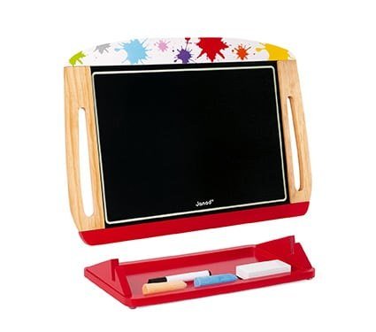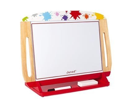 Ένας μεγάλος φορητός πίνακας διπλής όψεως, για να ζωγραφίζει το παιδί σε κάθε σημείο του σπιτιού, κατάλληλο για παιδιά ηλικίας 3-8 ετών. Μεταφέρεται εύκολα και τοποθετείται στην αντιολισθητική βάση του. Έχει μαυροπίνακα για κιμωλίες και άσπροπίνακα για μαρκαδόρους ξηρού καθαρισμού. Συνοδεύεται από 2 μεγάλα σετ με κιμωλίες, 1 μαρκαδόρο ξηρού καθαρισμού, 1 ασπροπίνακα και ένα σφουγγάρι.