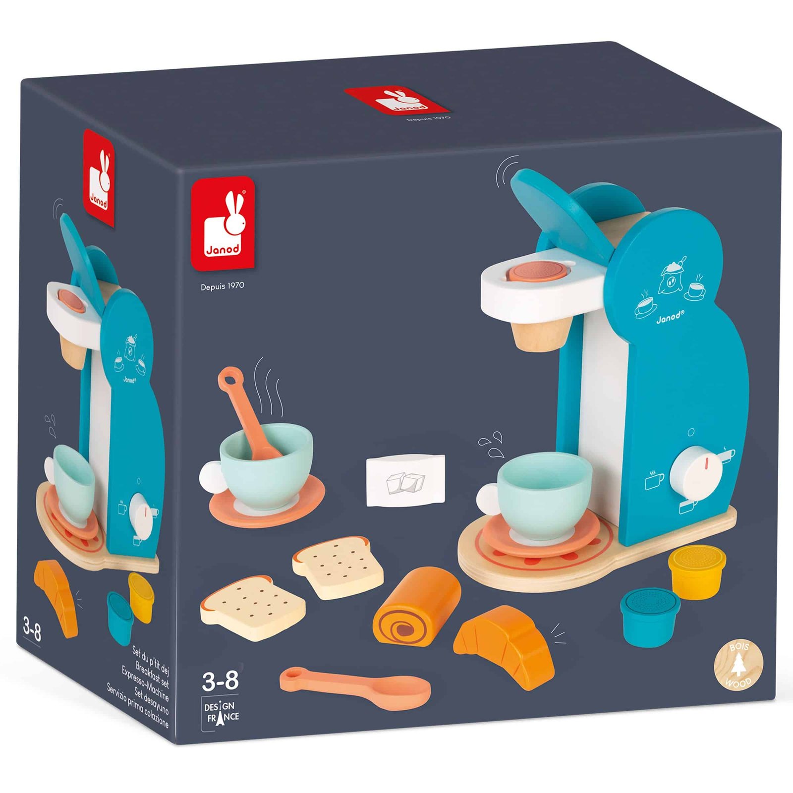 Για παιδιά ηλικίας 3-8 ετών. Η προετοιμασία του πρωινού είναι σοβαρή υπόθεση, και αυτό το χαριτωμένο σετ είναι ιδανικό προκειμένου τα παιδιά να διασκεδάσουν φτιάχνοντας καφέ και πρωινό. Βάζουν τις κάψουλες του καφέ στην καφετιέρα, επιλέγουν την ποσότητα του καφέ χρησιμοποιώντας τον ηχηρό διακόπτη, και ιδού! Υπάρχει λίγη ζάχαρη για τους γλυκατζήδες, και δεν υπάρχει τίποτα καλύτερο από γλυκά για να συνοδεύσουν αυτό το πρωινό. Περιλαμβάνεται μία καφετιέρα και 14 εξαρτήματα.
