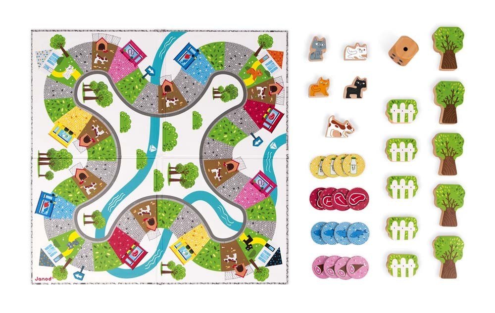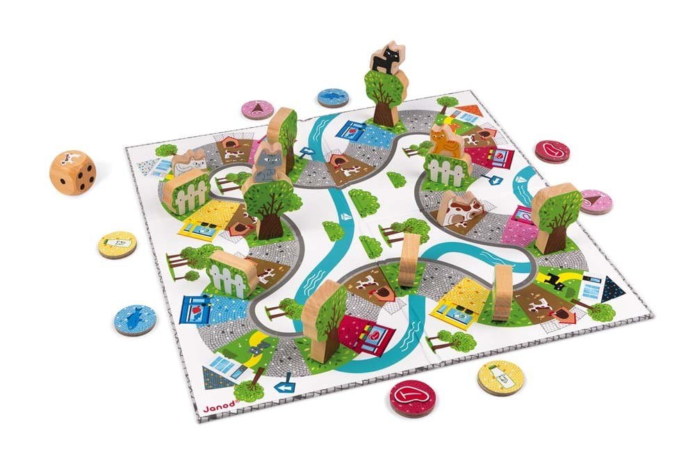 Από 2 έως 4 παίκτες. Παιχνίδι ταχύτητας. Θα είσαι η πιο πονηρή και γρήγορη γάτα στη γειτονιά; Φέρε πίσω όσο περισσότερο φαγητό μπορείς (κρέας, γάλα, ψάρι, ζαμπόν) τριγυρίζοντας στη γειτονιά χωρίς να σε κλέψει το πεινασμένο σκυλί. Ευτυχώς, μπορείς να κρυφτείς στους θάμνους και στα δέντρα! Ταμπλό: 33 x 33 εκ. 15 ξύλινα τεμάχια, 16 πιόνια και 1 ζάρι. Οι κανόνες του παιχνιδιού είναι γραμμένοι στα γαλλικά, στα αγγλικά, στα γερμανικά, στα ολλανδικά, στα ισπανικά και στα ιταλικά. Δύο επιπλέον βοηθητικές κάρτες συμπεριλαμβάνονται στη συσκευασία. Σκληρό κουτί με αυτοκόλλητο ασφαλείας.