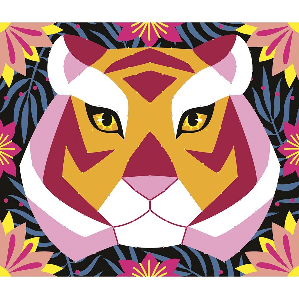 Ας κάνουμε ένα ταξίδι στη ζούγκλα για να ανακαλύψουμε έναν τροπικό παπαγάλο και ένα μεγαλόπρεπο λιοντάρι! Αυτό το δημιουργικό κιτ σάς επιτρέπει να δημιουργήσετε 2 εικόνες με κορδόνια. Χρησιμοποιώντας το φυλλάδιο οδηγιών βήμα προς βήμα, απλώς κολλήστε τα φωσφορίζοντα νύχια πάνω στα ταμπλό από αφρό και μετά περάστε από μέσα τα χρωματιστά κορδόνια. Το αποτέλεσμα σας υποσχόμαστε ότι θα είναι θεαματικό! Αυτή η δραστηριότητα με τα χέρια βοηθά το παιδί σας να αναπτύξει τις λεπτές κινητικές δεξιότητες και την υπομονή του. Καθεμία από τις δύο εικόνες χρειάζεται περίπου 3 ώρες για να ολοκληρωθεί. Ιδανική για παιδιά ηλικίας από 8 ετών και άνω.