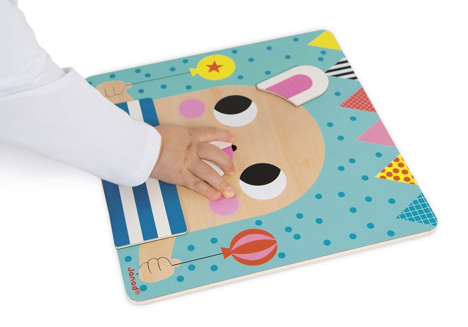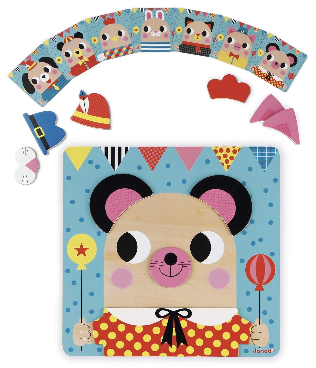 30 τεράστια μαγνητικά κομμάτια και εκατοντάδες πιθανοί συνδυασμοί! Αυτό το μαγνητικό παιχνίδι συσχετισμού είναι ιδανικό για να αναπτύξει τις λεπτές κινητικές δεξιότητες του παιδιού σας. Θα βοηθήσει, επίσης, το παιδί να αναγνωρίσει τα διαφορετικά μέρη που αποτελούν το πρόσωπο του σκύλου, του λαγού, της γάτας, της αρκούδας, της κότας και του γουρουνιού. Περιέχει 1 πίνακα, 30 κομμάτια και 7 κάρτες πρότυπο. Ξύλο: κόντρα πλακέ. Εκτύπωση: θερμοτυπία. Κλειστό κουτί.