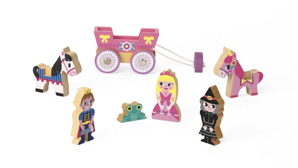 Ανακάλυψε τον κόσμο των παραμυθιών μέσα από 7 ξύλινες φιγούρες. Φτιάξε το δικό σου παραμύθι και ζήσ’ το!Η συσκευασία περιέχει μία πριγκίπισσα, έναν πρίγκιπα, μία μάγισσα, έναν βάτραχο, έναν μονόκερο, ένα άλογο και μία άμαξα.Το κουτί χρησιμεύει και ως σκηνικό για παιχνίδι. Κατάλληλο από 3 έως 6 ετών.