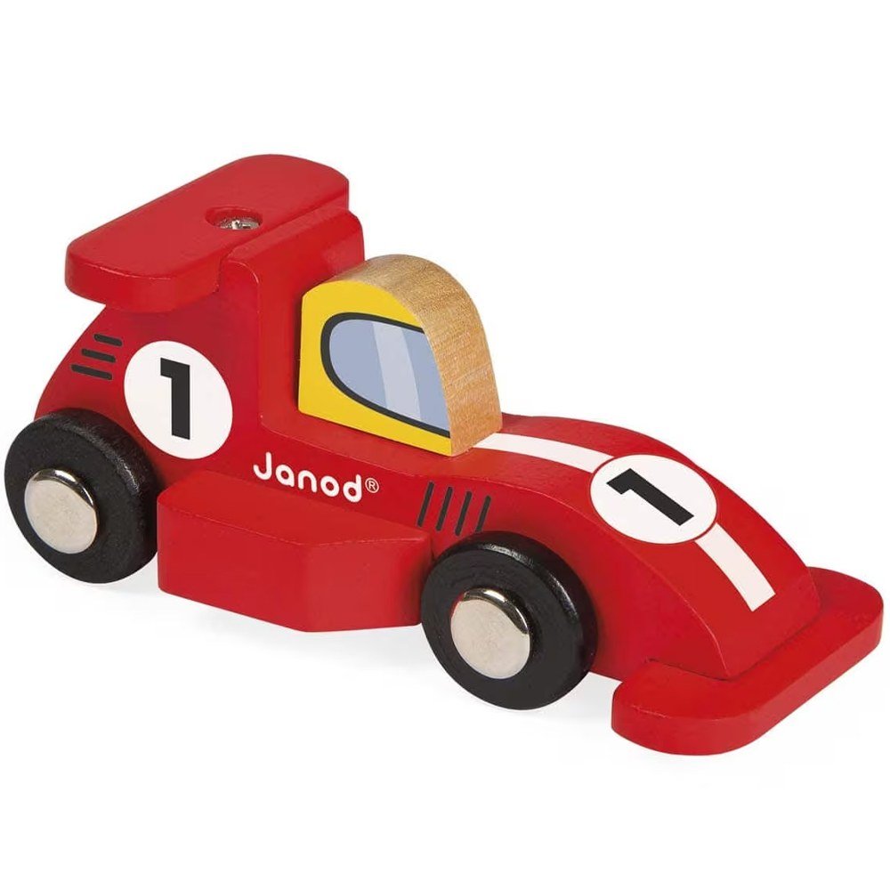 Ξύλινο αγωνιστικό αυτοκίνητο. Συγκέντρωσε όλα τα μοντέλα της σειράς: ταχύτητας, φόρμουλα 1, ρετρό αυτοκίνητο, σπορ και αγωνιστική μηχανή. Συμβατά με όλα τα σετ της σειράς Story. Εκτύπωση: θερμοτυπία. Ξύλο: κερασιά. Το κεφάλι του πιλότου και το πίσω φτερό είναι στερεωμένα με βίδα και κόλλα, οι τροχοί με μεταλλικά πριτσίνια, κάνοντας το παιχνίδι αυτό εξαιρετικά ασφαλές για παιδιά ηλικίας κάτω των 3 ετών. Διατίθεται σε 6 σχέδια (3 ασημένιο γκρι + 3 κόκκινα αυτοκίνητα). Ανοιχτό κουτί με εσωτερικό ΡΕΤ. Το κουτί διαθέτει μικρή λαβή στο πάνω μέρος και μπορεί να κρεμαστεί.