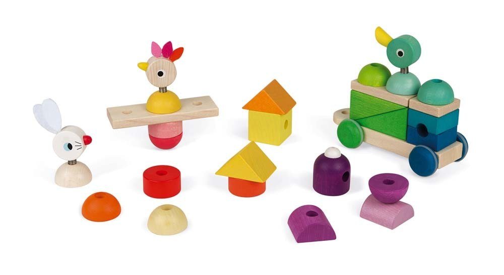 2 παιχνίδια σε 1: συρόμενο παιχνίδι που θα αναπτύξει την κινητικότητα του μωρού. Πολλά στοιβαζόμενα κομμάτια για να μάθει τα σχήματα και τα χρώματα. Ξύλο: οξιά και κερασιά. Αθόρυβοι τροχοί φτιαγμένοι από αντιολισθητικό λάστιχο. Μήκος κορδονιού 50 εκ. Βαφή νερού. Πιστοποίηση FSC. Το προϊόν πωλείται τυλιγμένο σε μπλίστερ μέσα σε χρωματιστό κουτί με παράθυρο.