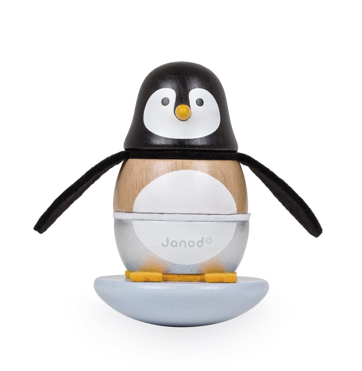 Ξύλινο παιχνίδι από συμπαγές ξύλο (οξιά). Για παιδιά ηλικίας 12 έως 36 μηνών. Βαφή νερού. Πιγκουίνος από ξύλινα και τσόχινα μέρη, για να κατασκευάσεις ένα όμορφο κουνιστό παιχνίδι. Κλειστό χρωματιστό κουτί.