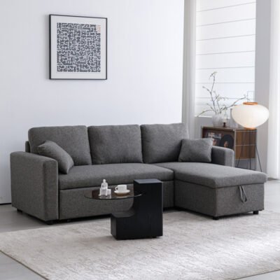 Γωνιακός αναστρέψιμος καναπές κρεβάτι Kamore με αποθηκευτικό χώρο ανθρακί ύφασμα 223x146x85εκ