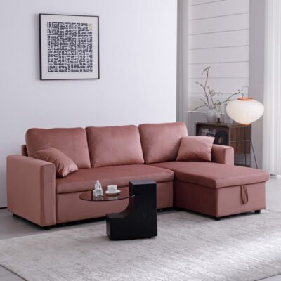 Γωνιακός αναστρέψιμος καναπές κρεβάτι Kamore με αποθηκευτικό χώρο σάπιο μήλο βελούδο 223x146x85εκ