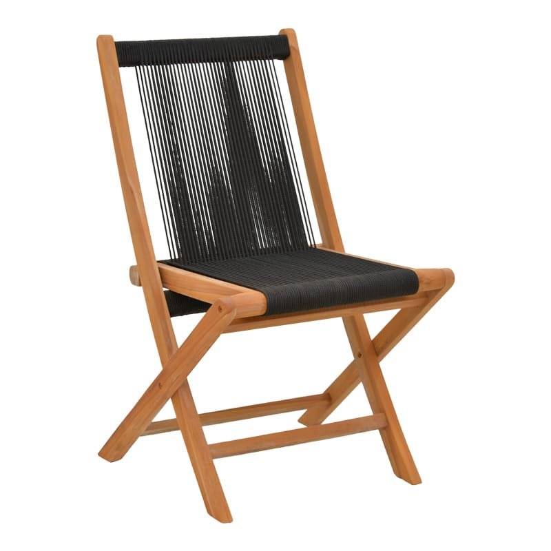 Καρέκλα Banou πτυσσόμενη teak ξύλο και pe σχοινί σε μαύρη απόχρωση 52.5x56x89εκ