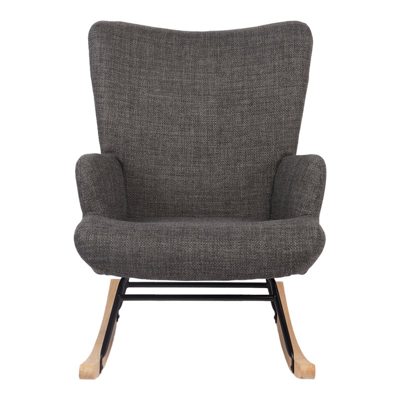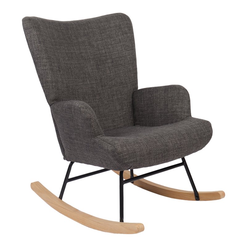 Κουνιστή πολυθρόνα Jianna ανθρακί ύφασμα με πόδι σε φυσική απόχρωση 79x64x89εκ