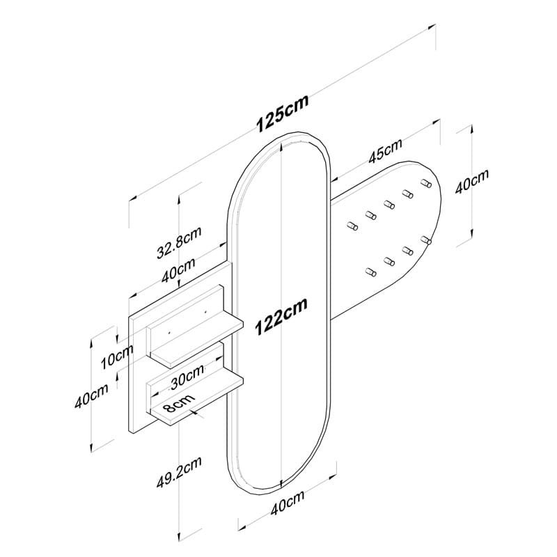 Κρεμάστρα-καθρέπτης Baunty λευκό-καρυδί125x2x122εκ