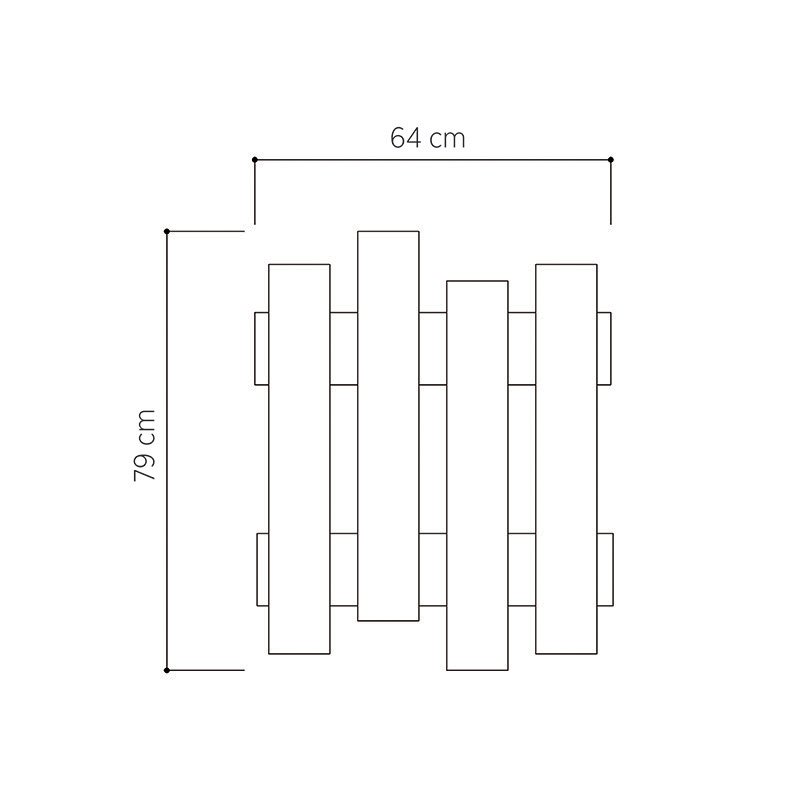 * Περιλαμβάνει τη σύνθεση τεσσάρων κάθετων και δύο οριζόντιων μερών τοποθετημένα ασύμμετρα που μαζί με οκτώ κρεμάστρες διαμορφώνουν ένα εντυπωσιακό αποτέλεσμα. Διάσταση προϊόντος: