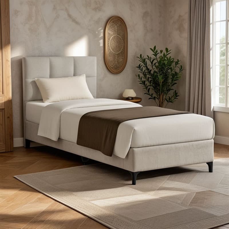 Κρεβάτι Melei ύφασμα σε κρεμ απόχρωση 90×200εκ
