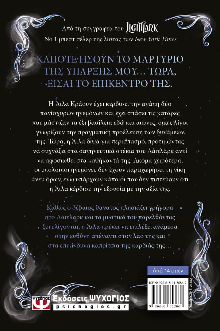 ΚΑΠΟΤΕ HΣΟΥΝ ΤΟ ΜΑΡΤYΡΙΟ ΤΗΣ YΠΑΡΞΗΣ ΜΟΥ… ΤΩΡΑ, ΕΙΣΑΙ ΤΟ ΕΠΙΚΕΝΤΡΟ ΤΗΣ. Η Άιλα Κράουν έχει κερδίσει την αγάπη δύο πανίσχυρων ηγεμόνων και έχει σπάσει τις κατάρες που μάστιζαν τα έξι βασίλεια εδώ και αιώνες, όμως λίγοι γνωρίζουν την πραγματική προέλευση των δυνάμεών της. Τώρα, η Άιλα διψά για περισπασμό, προτιμώντας να συχνάζει στα σαγηνευτικά στέκια του Λάιτλαρκ αντί να αφοσιωθεί στα καθήκοντά της. Ακόμα χειρότερα, οι υπόλοιποι ηγεμόνες δεν έχουν παραχωρήσει τη νίκη άνευ όρων, ενώ υπάρχουν κάποιοι που δεν πιστεύουν ότι η Άιλα κέρδισε την εξουσία με την αξία της. Καθώς ο βέβαιος θάνατος πλησιάζει γρήγορα στο Λάιτλαρκ και τα μυστικά του παρελθόντος ξετυλίγονται, η Άιλα πρέπει να επιλέξει ανάμεσα στην ευθύνη απέναντι στον λαό της και στα επικίνδυνα καπρίτσια της καρδιάς της…