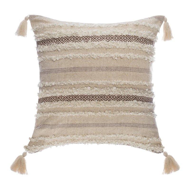 Μαξιλάρι διακοσμητικό Polat με κρόσσια ύφασμα σε μπεζ απόχρωση 59×59εκ