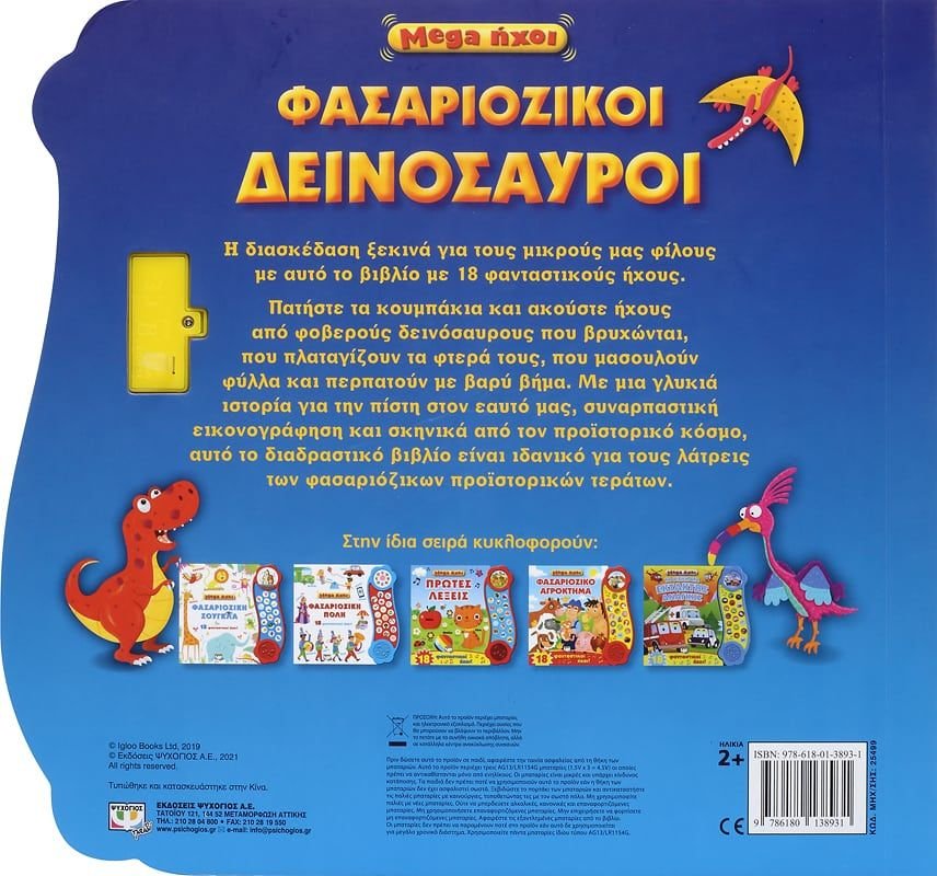 Η διασκέδαση ξεκινά για τους μικρούς μας φίλους με αυτό το βιβλίο με 18 φανταστικούς ήχους. Πατήστε τα κουμπάκια και ακούστε ήχους από φοβερούς δεινόσαυρους που βρυχώνται, που πλαταγίζουν τα φτερά τους, που μασουλούν φύλλα και περπατούν με βαρύ βήμα. Με μια γλυκιά ιστορία για την πίστη στον εαυτό μας, συναρπαστική εικονογράφηση και σκηνικά από τον προϊστορικό κόσμο, αυτό το διαδραστικό βιβλίο είναι ιδανικό για τους λάτρεις των φασαριόζικων προϊστορικών τεράτων.