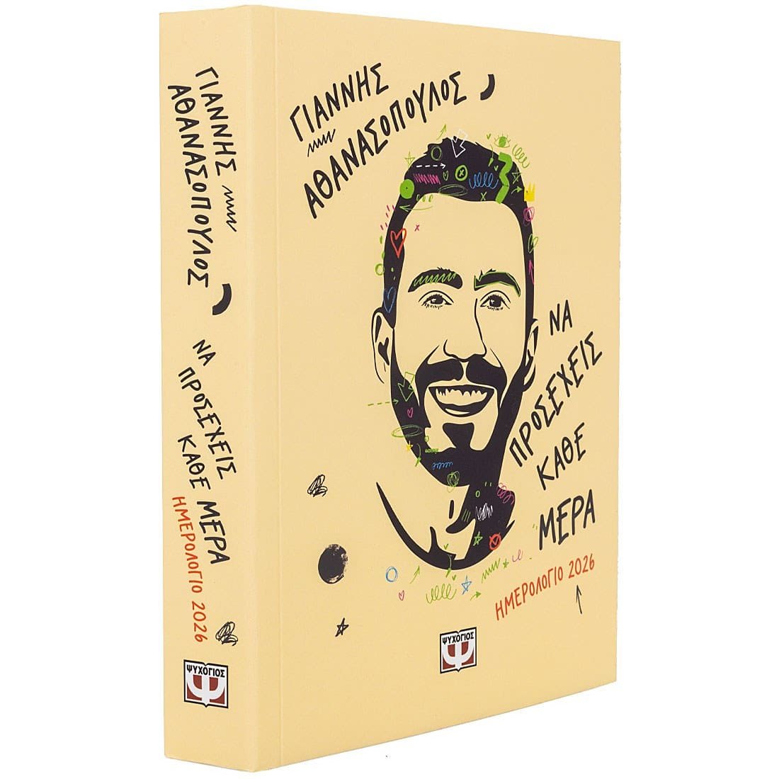Η μάνα μου πάντα με κοιτούσε στα μάτια και μου το έλεγε: «Να προσέχεις».Αυτό το ημερολόγιο είναι μία υπενθύμιση.Για εσένα.Να προσέχεις. Κάθε μέρα.Να προσέχεις… εμένα, εσένα και εκείνους. Μαζί. Και πάντα. Πώς αλλιώς; Ένα ημερολόγιο για το 2026 με την υπογραφή και τις παρηγορητικές λέξεις του ψυχολόγου Γιάννη Αθανασόπουλου.