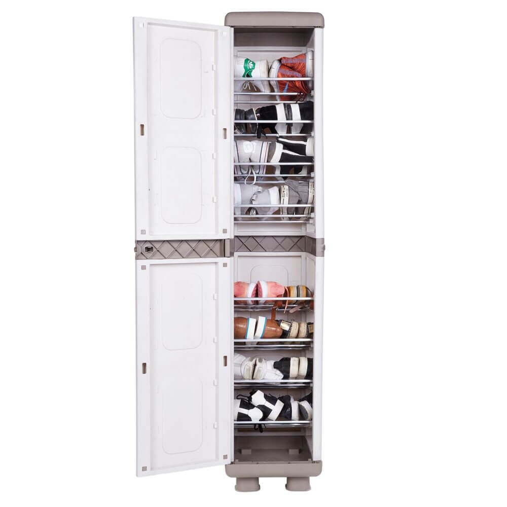 Αποτελείται από 1 πόρτα, 4 ράφια με αντοχή βάρους έως 25kg. Η εύκολη συναρμολόγηση παράλληλα με την ανθεκτική της κατασκευή στις καιρικές συνθήκες την καθιστούν ως μια ιδανική λύση για το μπαλκόνι σας ή το γκαράζ.