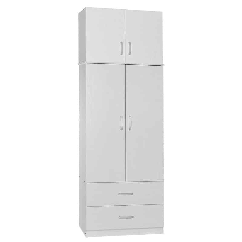 Ντουλάπα δίφυλλη και πατάρι Zelia λευκό 79x42x240εκ.