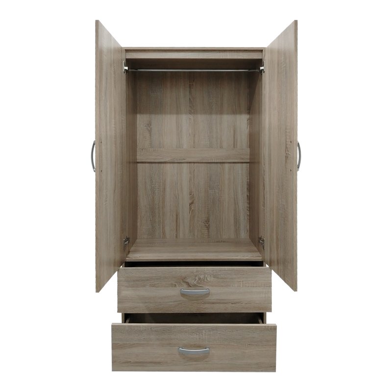 - Περιλαμβάνει δύο πόρτες, εσωτερικά φέρει ράγα για κρεμάστρες ενώ κάτω φέρει δύο μεγάλα συρτάρια για την αποθήκευση ρούχων και αξεσουάρ.