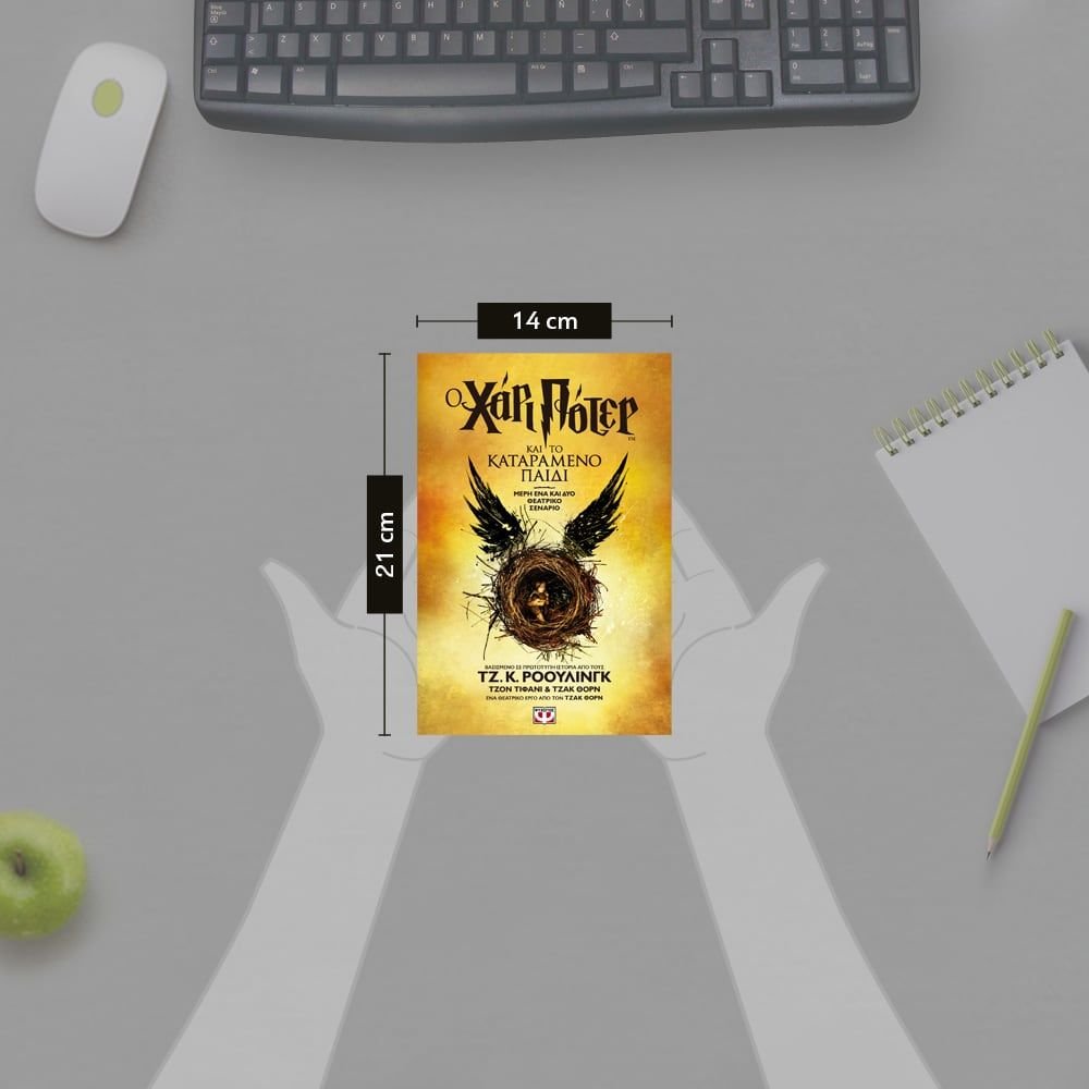Η ΟΓΔΟΗ ΙΣΤΟΡΙΑ. ΔΕΚΑΕΝΝΕΑ ΧΡΟΝΙΑ ΜΕΤΑ.Ανέκαθεν ήταν δύσκολο να είσαι ο Χάρι Πότερ και δεν έχει γίνει καθόλου ευκολότερο τώρα που ο Χάρι εργάζεται σκληρά στο Υπουργείο Μαγείας, είναι σύζυγος αλλά και πατέρας τριών παιδιών που πηγαίνουν σχολείο.Ενώ ο Χάρι παλεύει με το παρελθόν του, προσπαθώντας να απαγκιστρωθεί από αυτό, ο νεότερος γιος του, ο Άλμπους, έρχεται αντιμέτωπος με το βάρος της οικογενειακής κληρονομιάς που ποτέ του δε θέλησε. Καθώς το παρελθόν μπλέκεται δυσοίωνα με το παρόν, πατέρας και γιος ανακαλύπτουν τη δυσάρεστη αλήθεια: κάποιες φορές το σκοτάδι αναδύεται από μέρη που δεν το περιμένειςΟ ΧΑΡΙ ΠΟΤΕΡ ΚΑΙ ΤΟ ΚΑΤΑΡΑΜΕΝΟ ΠΑΙΔΙ πρωτοκυκλοφόρησε σε μια ειδική έκδοση του σεναρίου της πρόβας παράλληλα με την πρεμιέρα του έργου του Τζακ Θορν στο Γουέστ Εντ του Λονδίνου το καλοκαίρι του 2016. Βασισμένο σε μια πρωτότυπη νέα ιστορία από την Τζ. Κ. Ρόουλινγκ, τον Τζον Τίφανι και τον Τζακ Θορν, η θεατρική παράσταση έλαβε εγκωμιαστικές κριτικές από θεατές και κριτικούς, ενώ η έκδοση του σεναρίου έγινε παγκόσμιο μπεστ σέλερ.Η ανανεωμένη αυτή έκδοση περιλαμβάνει τους οριστικούς και τελικούς διαλόγους της θεατρικής παράστασης, που υπέστησαν μικρές αλλαγές μετά τις πρόβες, καθώς και μια συζήτηση ανάμεσα στον σκηνοθέτη Τζον Τίφανι και τον σεναριογράφο Τζακ Θορν, όπου μοιράζονται ιστορίες και συμβουλές σχετικά με την ανάγνωση σεναρίων. Τέλος, περιλαμβάνει χρήσιμες πληροφορίες σχετικά με το οικογενειακό δέντρο της οικογένειας Πότερ όπως και ένα χρονολόγιο σχετικά με τον Κόσμο των Μάγων πριν από αυτή την όγδοη ιστορία. Η παραγωγή του θεατρικού έργου ανήκει στους Sonia Friedman Productions, Collin Callender και Harry Potter Theatrical Productions.