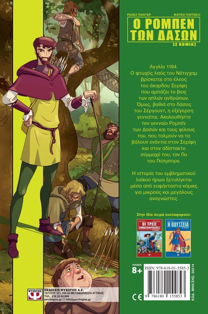 Αγγλία 1194. Ο φτωχός λαός του Νότιγχαμ βρίσκεται στο έλεος του άκαρδου Σερίφη που αρπάζει το βιος των απλών ανθρώπων. Όμως, βαθιά στο δάσος του Σέργουντ, η εξέγερση γεννιέται. Ακολουθήστε τον γενναίο Ρομπέν των Δασών και τους φίλους του, που τολμούν να τα βάλουν ενάντια στον Σερίφη και στον αδίστακτο σύμμαχό του, τον Γκι του Γκίσμπορν. Η ιστορία του εμβληματικού λαϊκού ήρωα ξετυλίγεται μέσα από ευφάνταστα κόμικς για μικρούς και μεγάλους αναγνώστες.