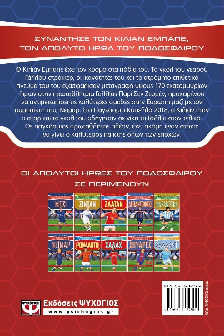 ΣΥΝΑΝΤΗΣΕ ΤΟΝ ΚΙΛΙΑΝ ΕΜΠΑΠΕ, ΤΟΝ ΑΠΟΛΥΤΟ ΗΡΩΑ ΤΟΥ ΠΟΔΟΣΦΑΙΡΟΥΟ Κιλιάν Εμπαπέ έχει τον κόσμο στα πόδια του. Τα γκολ του νεαρού Γάλλου στράικερ, οι ικανότητές του και το ατρόμητο επιθετικό πνεύμα του του εξασφάλισαν μεταγραφή ύψους 166 εκατομμυρίων λιρών στην πρωταθλήτρια Γαλλίας Παρί Σεν-Ζερμέν, προκειμένου να αντιμετωπίσει τις καλύτερες ομάδες στην Ευρώπη μαζί με τον συμπαίκτη του, Νεϊμάρ. Στο Παγκόσμιο Κύπελλο 2018, ο Κιλιάν ήταν ο σταρ και τα γκολ του οδήγησαν σε νίκη τη Γαλλία στον τελικό. Ως παγκόσμιος πρωταθλητής πλέον έχει έναν ακόμη στόχο: να γίνει ο καλύτερος παίκτης όλων των εποχών.