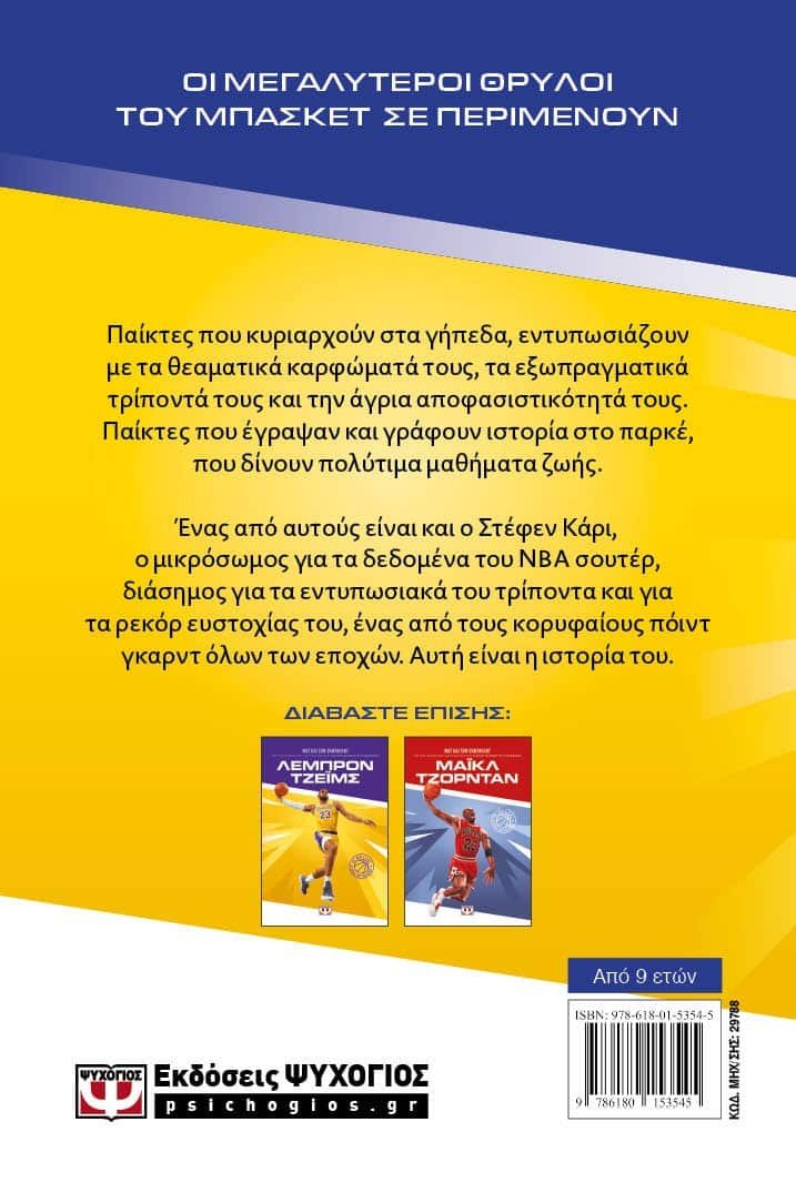Παίκτες που κυριαρχούν στα γήπεδα, εντυπωσιάζουν με τα θεαματικά καρφώματά τους, τα εξωπραγματικά τρίποντά τους και την άγρια αποφασιστικότητά τους. Παίκτες που έγραψαν και γράφουν ιστορία στο παρκέ, που δίνουν πολύτιμα μαθήματα ζωής.Ένας από αυτούς είναι και ο Στέφεν Κάρι, ο μικρόσωμος για τα δεδομένα του ΝΒΑ σουτέρ, διάσημος για τα εντυπωσιακά του τρίποντα και για τα ρεκόρ ευστοχίας του, ένας από τους κορυφαίους πόιντ γκαρντ όλων των εποχών. Αυτή είναι η ιστορία του.